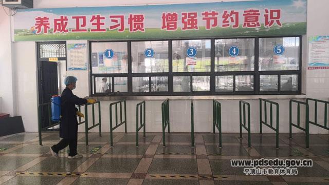返校后,对食堂内外进行彻底的卫生大扫除、通风消杀。每天对员工进行晨午检,建立了员工体温检测台帐。严格按照规范进行洗手消毒,工作时必须佩戴口罩、帽子、手套等防护用品。