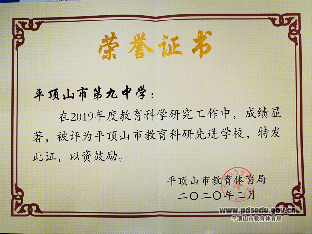 市九中被评为市教育科研先进学校