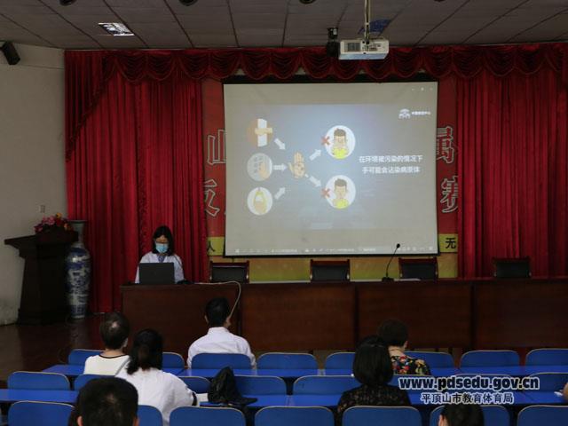 会上,首先对七、八年级教职工进行防疫培训。学校保健员李璐璐老师对参会人员进行了新冠肺炎及春季常见传染病预防知识培训,增强教职工自我防护能力以及复学后师生安全防控的能力。