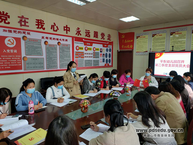 | 繁体 | 网站已支持ipv65月10号上午,平东幼儿园全体党员在鸿鹰园党员活动室召开了第二季度支部党员大会暨发展党员民主测评会,活动由党支部书记赵惠芳主持,全体党员参加会议。