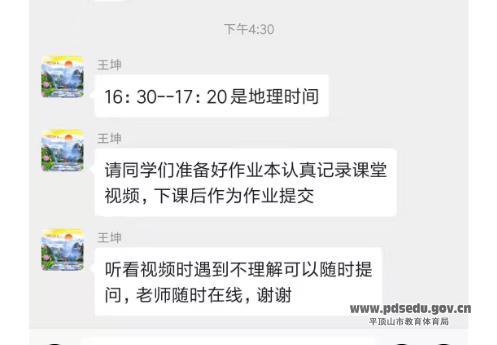 其次,学校教师恪尽职守,尽心尽责。各学科备课组长提前安排备课分工,开学前备出四周的新课。各位任课老师及时搜集整理教学资源,按时制作好教学课件和教学设计,以便于同头课老师交流讨论,共享资源。各班任课教师加入所在班级学生微信群和QQ群,指导学生网上在线收听收看公开课,或者通过直播课堂,面对面授课。任课教师按照进度给学生布置学习任务,利用微信班级小管家督促检查学生完成作业,随时为学生解答疑难问题。