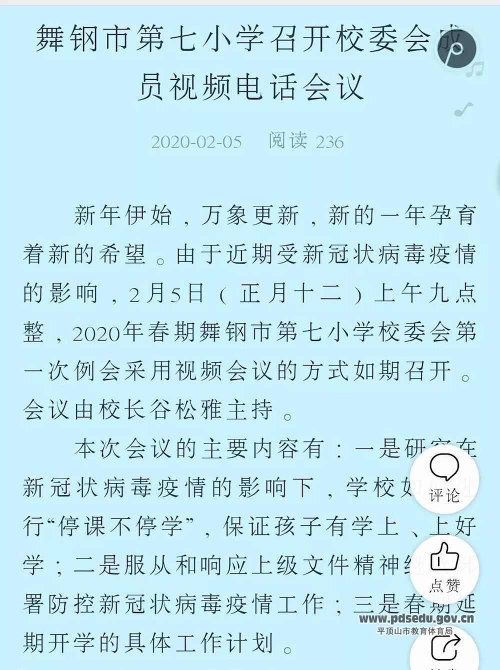 三是加强监督检查促成效。为更有效实现“停学不停教、不停学”的网上教学目的,舞钢市教体局专门成立监督检查小组,随后在延迟开学期间,将会采用电话、网上截图、作业反馈等方法督促网络课程每一环节、每一细节的落实,确保学生学习成效显著。同时明确要求各学校严禁以开展网上教学名义强制要求学生使用收费性教学平台。