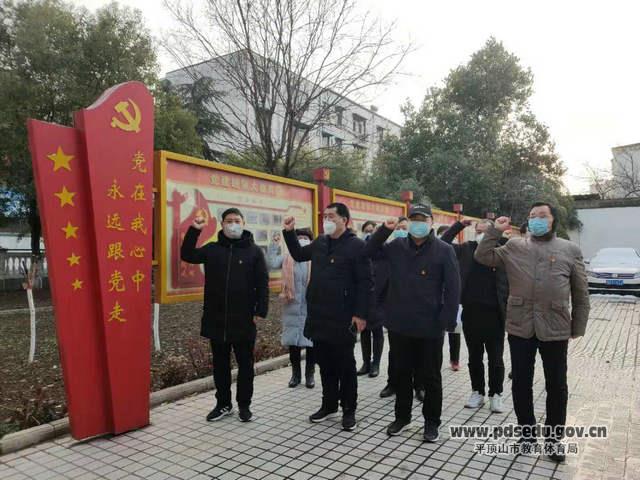 县教体局机关支部党员在局机关院内庄严宣誓,重温入党誓词,在疫情防控战斗中以实际行动自觉接受党性锻炼。广大在职党员强化使命担当,闻令而动、全力投入,积极奔赴疫情防控最前沿,认真做好党组织分配的联防联控工作。
