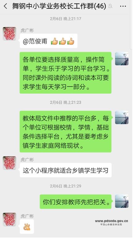 考虑到疫情防控的实际情况,舞钢教体局转变传统会议模式,利用微信、钉钉等工作群,多次线上召开各学科教研员会议,安排部署不同学段教研工作。