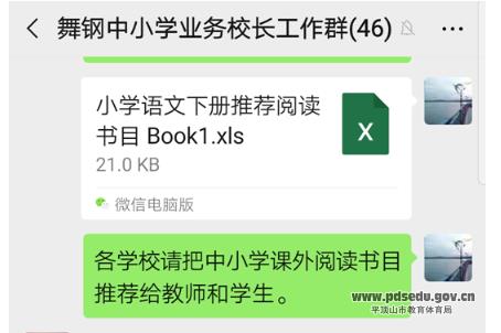 按照舞钢教体局《关于延期开学期间组织开展在线教学的通知》精神,教研室成立了14个中小学网上教学教研工作指导组,指导并协调解决延期开学教学教研工作中的实际问题;例如,中小学语文组分年级向各学校推荐了课外必读书目和舞钢中小学诗词大会题库,鼓励孩子在家多读书,读好书,会读书;其学科教研员及时推送优质教育资源。