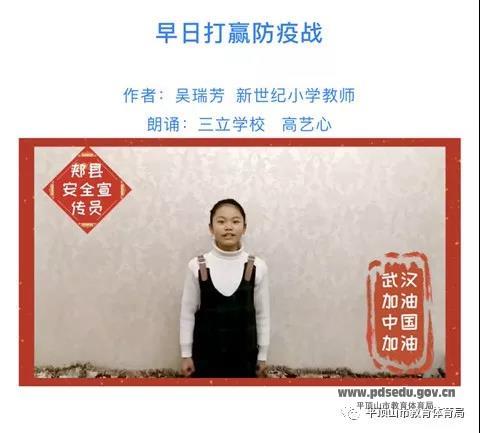 抗疫阻击战伊始,在县抗疫的队伍里,就有一股清亮的童声,声虽稚嫩,却也铿锵。通俗易懂的儿歌,童声童趣的朗诵,便于传播的微视频,迅速被做为“抗疫”宣传载体在郏县传播开来。