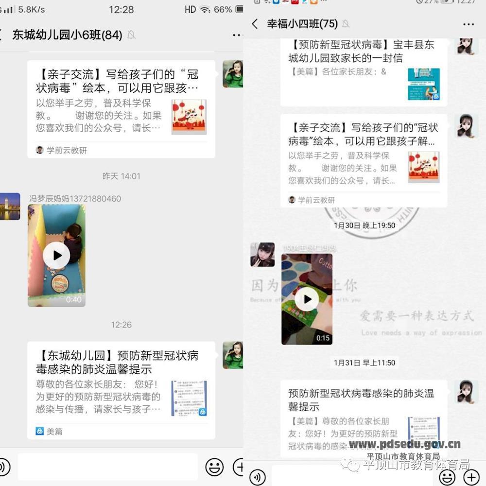 活动期间,东城幼儿园还利用班级微信群等,通过分享关于疫情的绘本故事、抗击新冠肺炎的美篇、致家长的一封信等形式,传递科学防控知识和权威信息,提醒家长、幼儿做好防疫防控。
