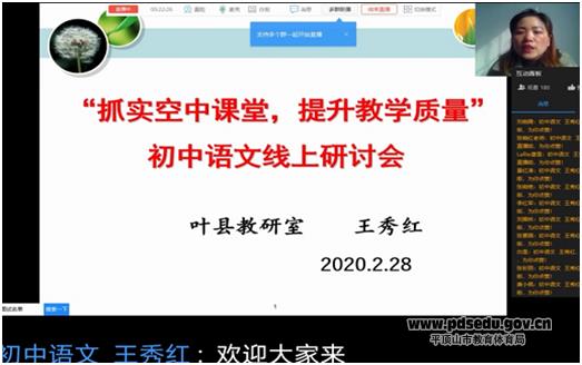 | 繁体 | 网站已支持ipv6“停课不停学,停课不停研”。为降低疫情对教育教学的影响,为进一步提升教师的专业素养和教学技能,增强“空中课堂”的教学效果,2月28日下午,叶县教研室根据预定的教研计划,召开了“抓实空中课堂,提升教学质量”初中语文线上研讨会。