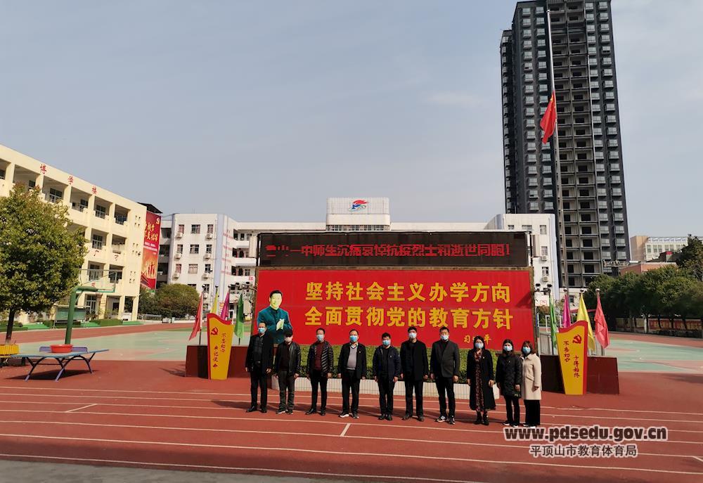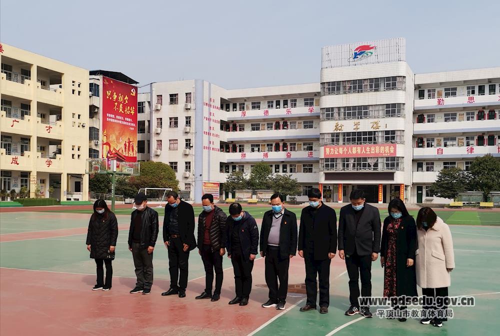 琴台中心校党总支书记乔永超,鲁山一中党支部书记、校长刘宪政出席现场活动,全校师生通过网络直播参加线上哀悼活动。