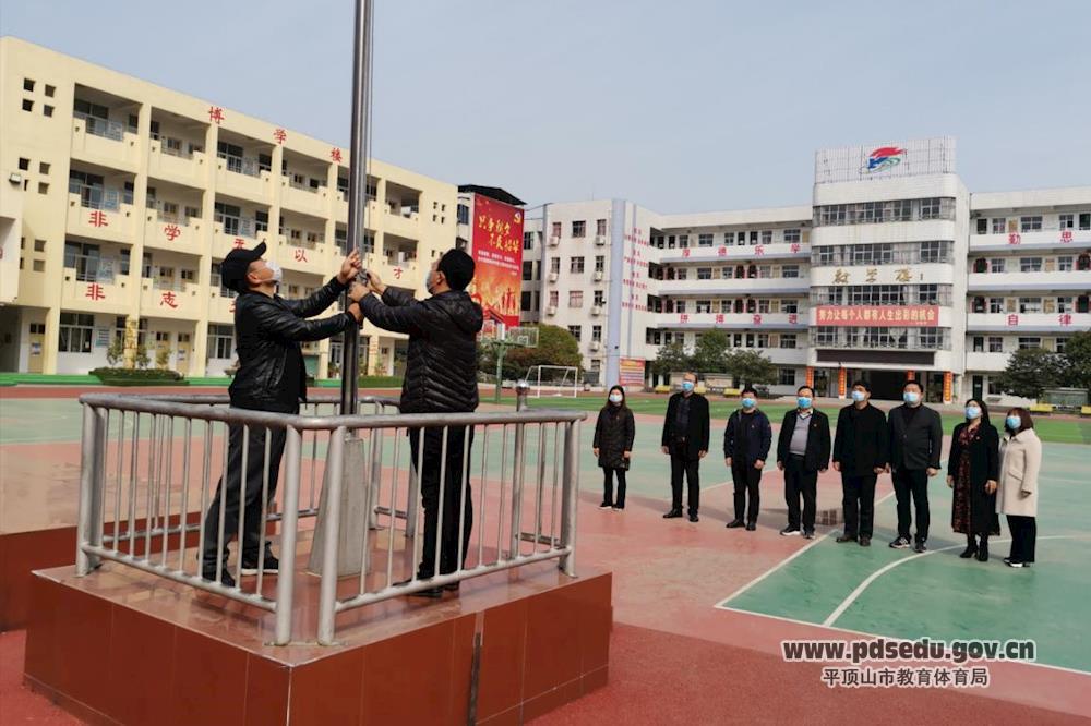 上午10时整,在庄严的国歌声中,琴台中心校党总支书记乔永超和鲁山一中党支部班子成员在活动现场向国旗行注目礼,注视五星红旗冉冉升起。