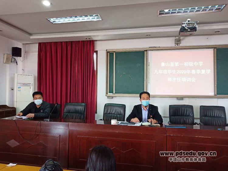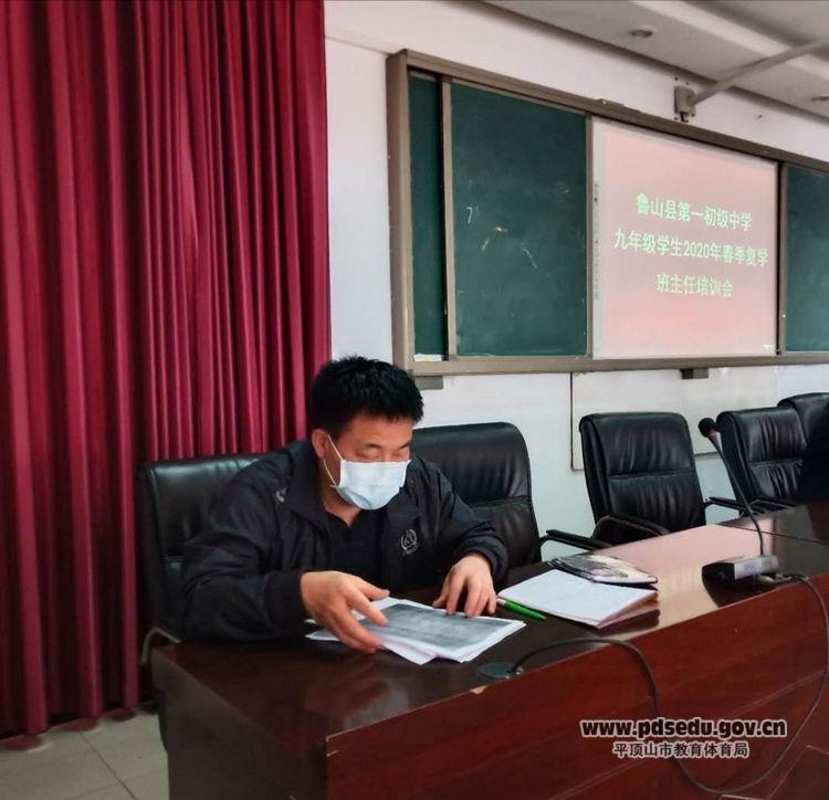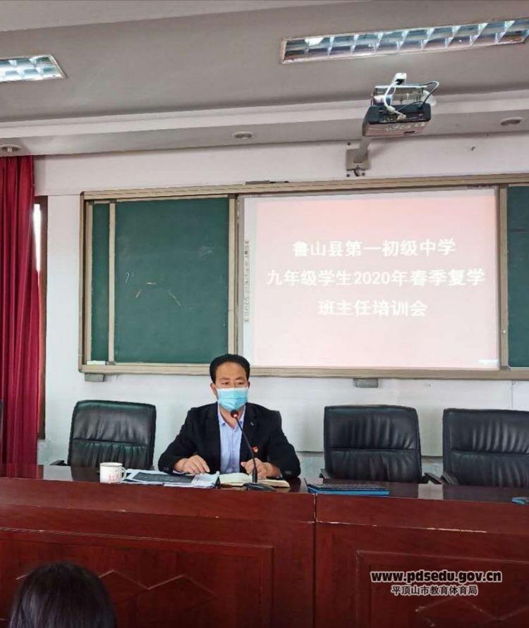 为迎接九年级同学顺利返校学习,切实保障师生生命健康和人身安全,4月19日下午,鲁山一中在大会议室召开九年级2020年春季复学班主任培训会。主抓九年级工作的副校长许六奇,主抓政教工作的副校长郭军政出席会议,参加会议的除了九年级班子成员和全体班主任外,还有七、八年级的政教主任。