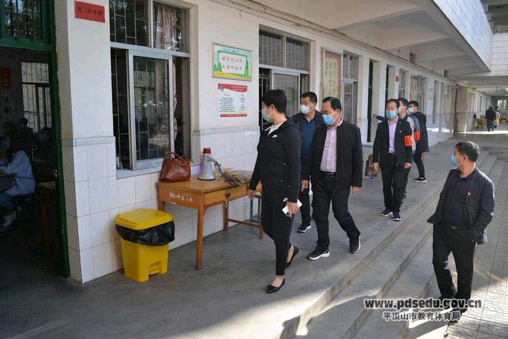 自平顶山市初中毕业开学工作提上日程以来,先后有平顶山市教体局党组书记、局长邱红标,调研员钮春黎,市教科所所长宋金超,市教育技术装备站党支部书记齐永琴;鲁山县教体局主任科员吕娉萍,党组成员、副局长曹国辉,党组成员、进修学校校长胡金杭;鲁山县纪委监委派驻教体局纪检监察组副组长鲁建杰、孙镱光等各级领导到鲁山一中检查工作。