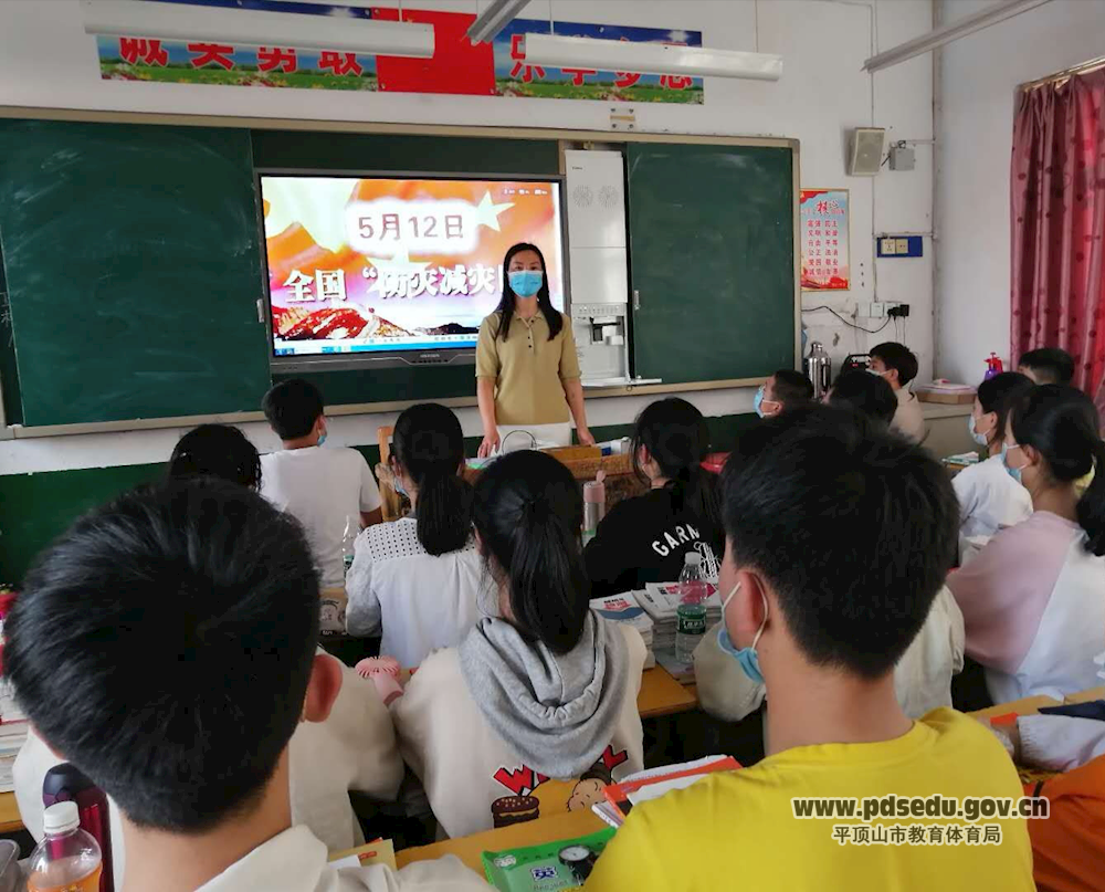 5月12日当天,七、八、九三个年级分别通过线下、线上等不同形式召开“全国防灾减灾日主题班会”。班主任播放了全国防灾减灾日宣传教育专题片,向同学们讲述了全国防灾减灾日设立的由来,讲解了抗震、抗洪、防火、抗疫情、防溺水、防食物中毒、防交通事故等防灾减灾救灾知识和逃生、自救方法,增强了学生安全防范意识,提高了防灾减灾救灾能力。