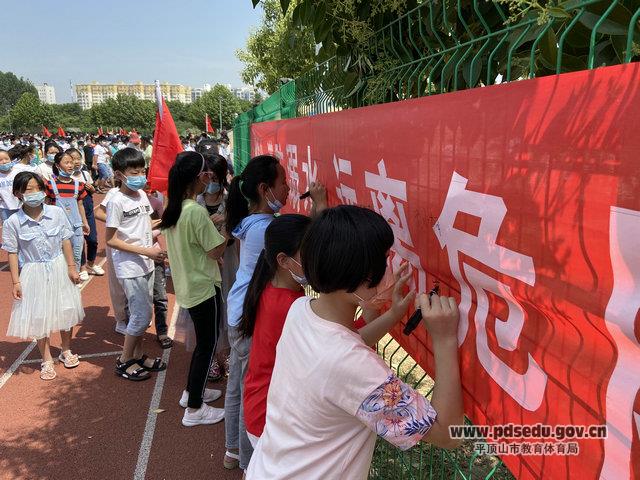 宣誓过后,各班班主任带领学生代表到旗台前的“珍爱生命·预防溺水”条幅上庄重的签下了自己的签字,时刻铭记防溺水安全的重要性,严格遵守防溺水安全教育“六不准”,时刻记得要用自己的行动来履行自己的誓言。