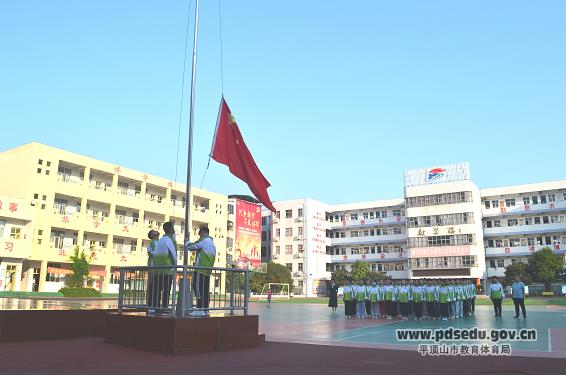 五星红旗是无数革命先烈用鲜血染成的,国旗才真正是我们的保护神。全体师生坚毅的目光里流露出对革命英雄的无比崇敬和对伟大祖国的深深热爱!国旗飘扬,歌声回响,满满的爱国激流在每一位师生心中升腾。