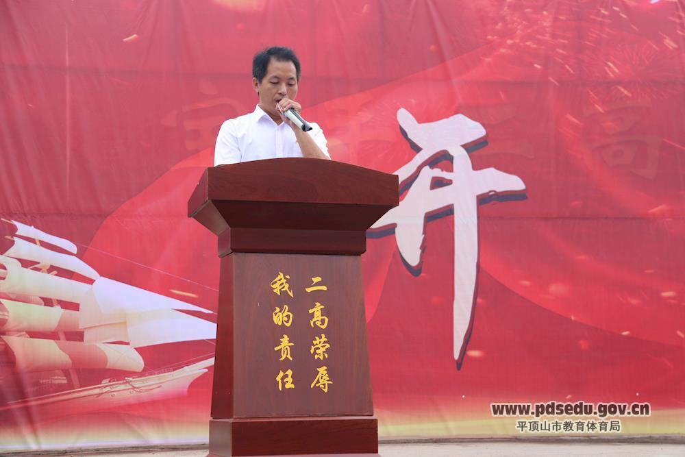?大会进行第五项:校长致辞。 李志昂为全体师生作了题为《用奋斗和实干托举立德树人的教育希望》的精彩讲话。