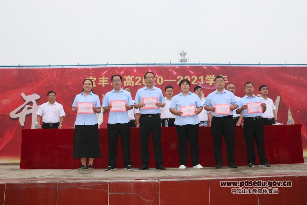 大会进行第二项:宣读表彰决定。 宝丰二高副校长王冬阳宣读文件:《关于表彰2019-2020学年第二学期教学效果优秀奖和优秀班主任的决定》。 宝丰二高副校长楚华颖宣读文件:《关于表彰2019-2020学年第二学期先进集体和优秀个人的决定》。