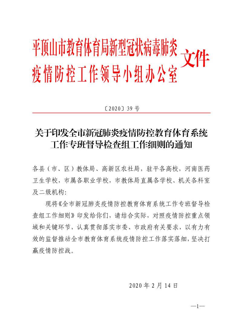 全市新冠肺炎疫情防控教体系统专班督导检查组工作细则