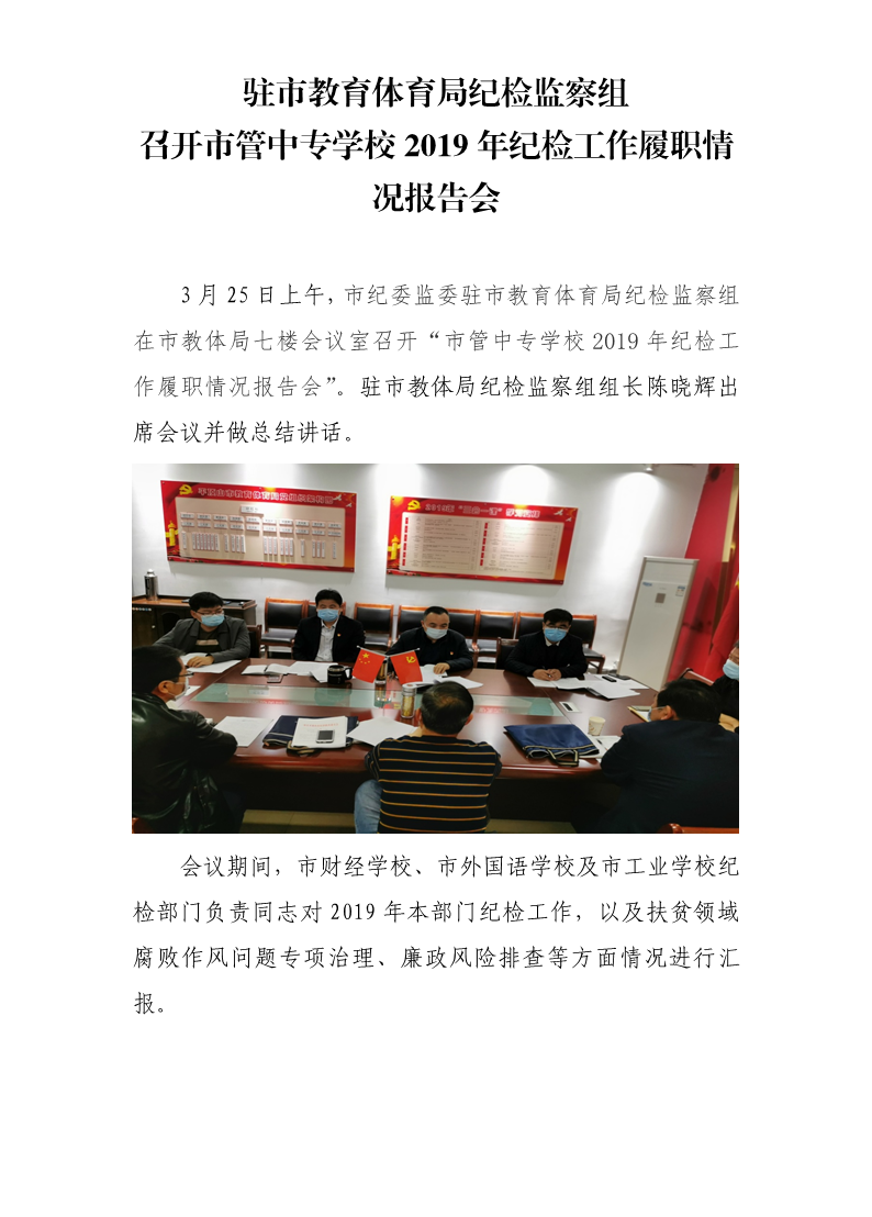 驻市教体局纪检监察组召开市管中专学校2019年纪检工作履职情况报告会