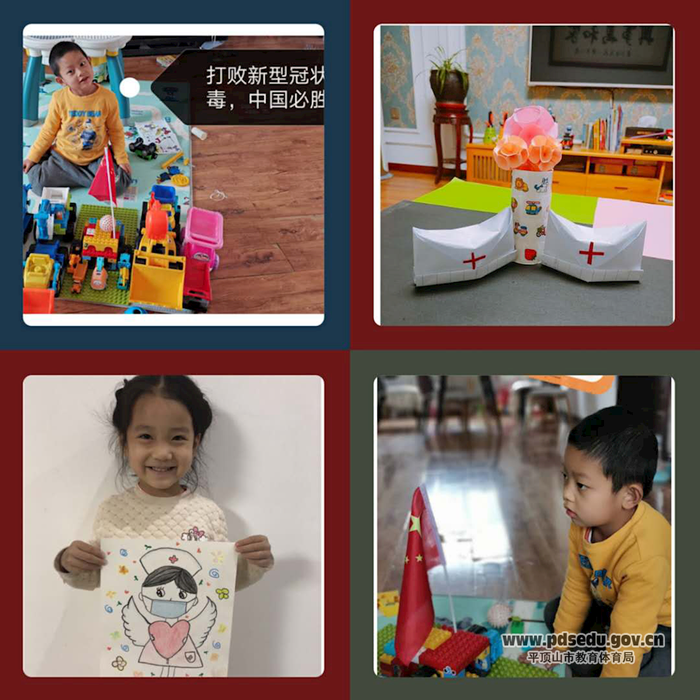 活动后,孩子们别出新裁,用折纸、绘画等形式讴歌奋战一线的抗疫英雄,表现了孩子们对抗疫英雄的敬仰、为祖国加油的心声。