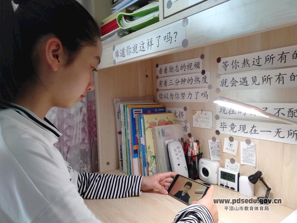 十四中七1班李佳怡在家中观看团课网络直播