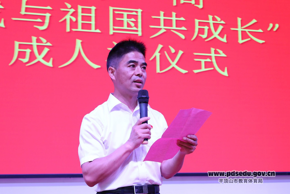 激情五月,生机盎然,一批高三学子即将迈入十八岁的成人行列。按照教体局活动安排,5月17日下午,宝丰一高在报告厅举行“与祖国共成长”成人仪式。校党委书记李红燕、副校长罗晗、副校长张国要和高三年级学生、班主任参加活动。