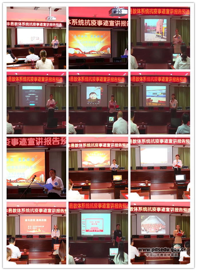 为丰富拓展“把灾难当教材 与祖国共成长”主题教育活动内容,发挥抗疫典型事迹的思想政治教育功能,广泛宣传抗疫斗争中全县教育体育系统涌现出的先进人物和典型事迹,7月28日下午,宝丰县教体局组织举行抗疫事迹宣讲报告预选活动。
