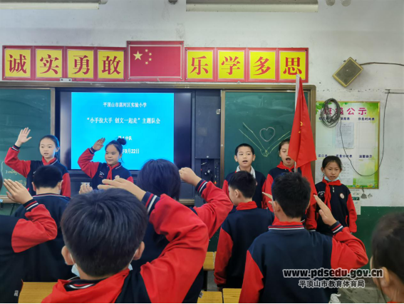 各班开展“小手拉大手,创文一起走” 主题班会,进行了创文宣誓。