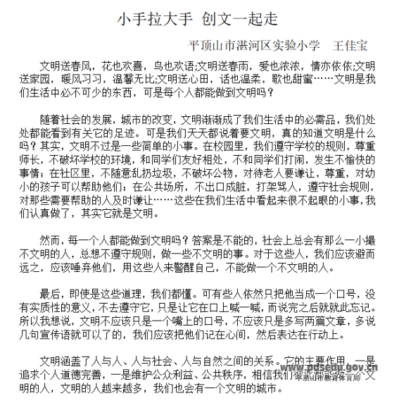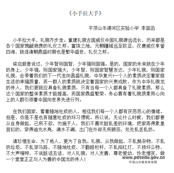 小手拉大手,创文一起走,同学们用实际行动,树文明之风,喜迎国庆。