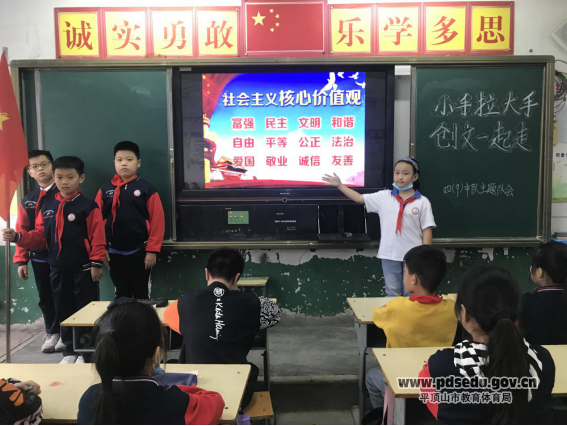 主题班队会上,讲红色故事、看红色影片、唱红色歌曲,用多样形式让队员们追寻红色记忆,弘扬革命精神,争做时代新人。