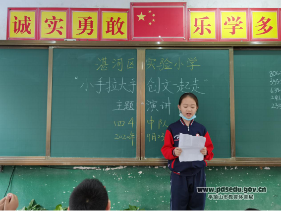 演讲、动员、宣传、倡议,同学们声情并茂地讲述自己对创文的理解,呼吁大家:积极行动起来,从我做起、从现在做起,小手拉大手,创文一起走。