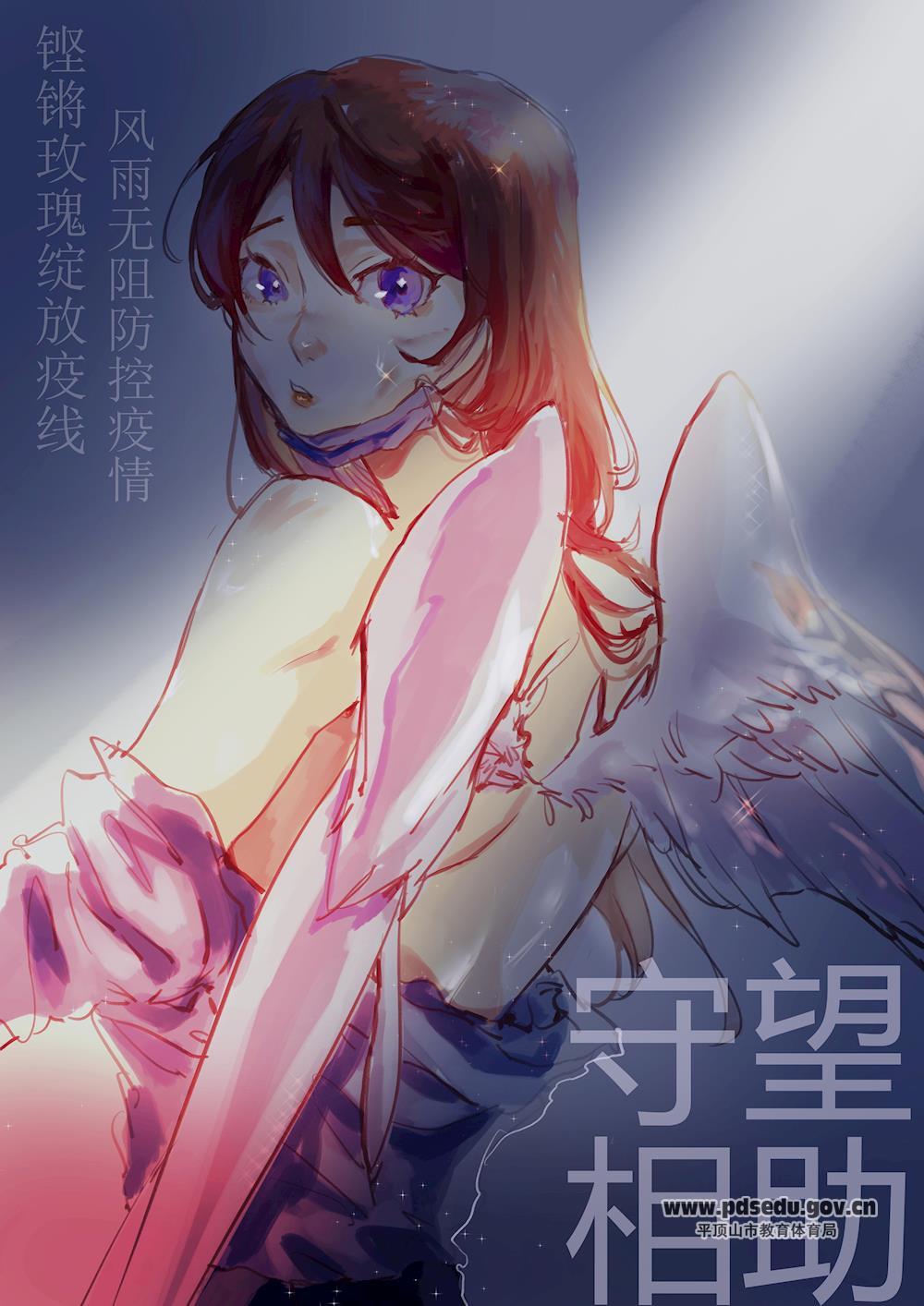由于疫情来得突然,许多社员们的绘画材料不是很充足,但大家还是克服重重困难,尽自己所能的创作了一些优秀的作品。在这些作品中,王钰同学勇于创新,改变了一贯的绘画形式,在数位板上完成了作品,整个画面色彩唯美,形象突出,刻画了白衣天使褪去防护服后的疲惫和辛劳。胡欣予同学的画面中那坚实的英雄背影,给了我们无穷的力量,让我们知道,有了无数逆行者的默默付出,才换来了我们今天平安稳定的生活。