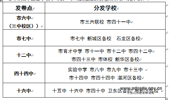 ②平顶山市区各学校于考前一小时到指定的发卷点领取(见下表)。