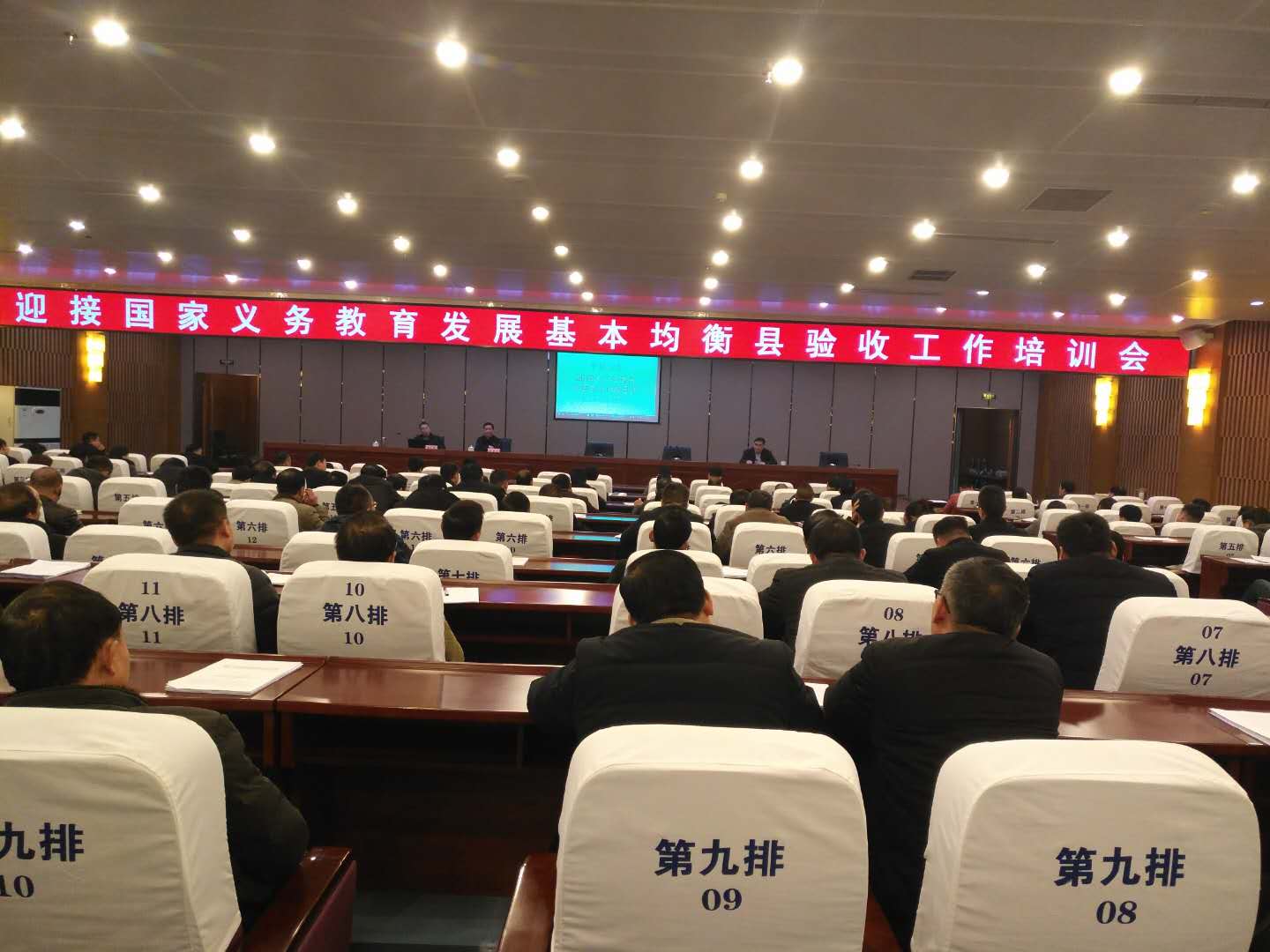 随后,在郏县会议中心召开义务教育发展均衡县验收工作培训会。市教体局督导室主任樊红超同志利用PPT就义务教育发展基本均衡县评估验收工作给全县100所迎检学校校长和教体局有关人员进行了培训。